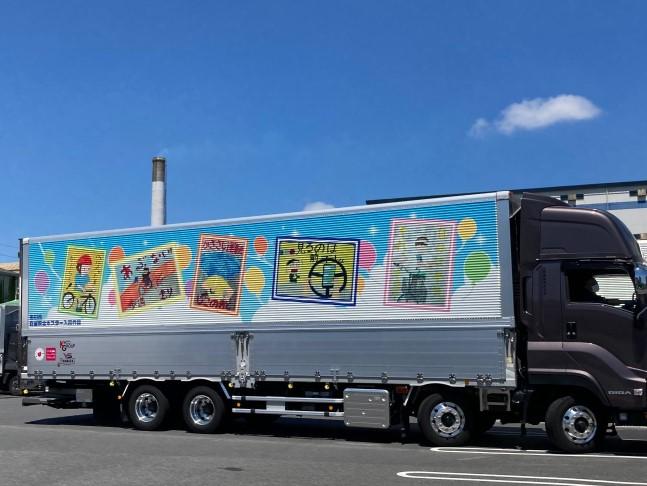 その絵を見た宮田社長が、子供たちの絵をトラックにラッピングしたのが始まり・・・